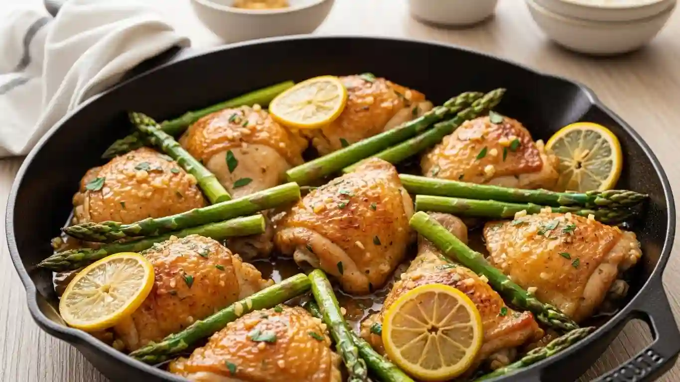 The garlic butter sauce adds rich flavor without making the dish heavy. Lemon juice balances the butter and keeps the chicken tasting fresh. Cooking the asparagus in the same skillet allows it to absorb the sauce while staying crisp.